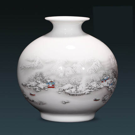 Small snow globes shape pottery flower vase with snow scene on