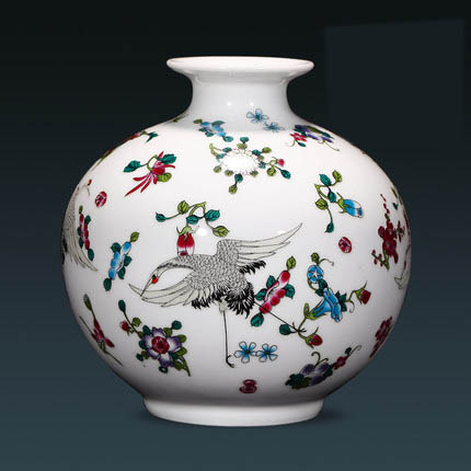 Small vintage luminous ceramic vase ornament with birds and flowers