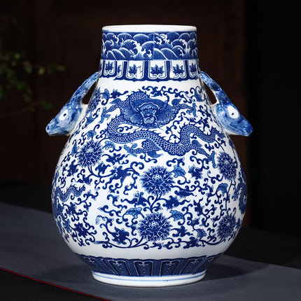 Jahrriesnge binaural dragon pattern vase cna0565 Porcelain