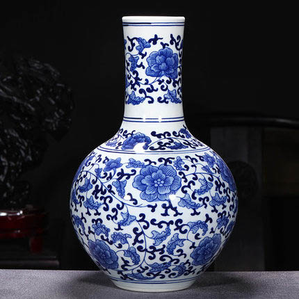 Antique celestial sphere shape blue and white ornamental ceramic vase