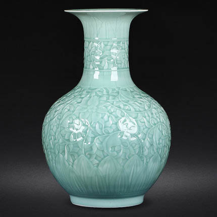 Jahrriesnge carving shadow blue glaze vase cna1306 Porcelain