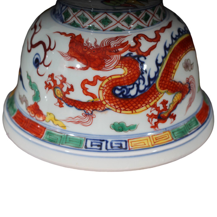 Blue and white glaze red ceramic candle holder with dragon and phoenix