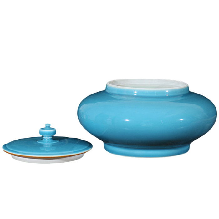 Happiness and joy small blue porcelain vase pot with lid for birthday