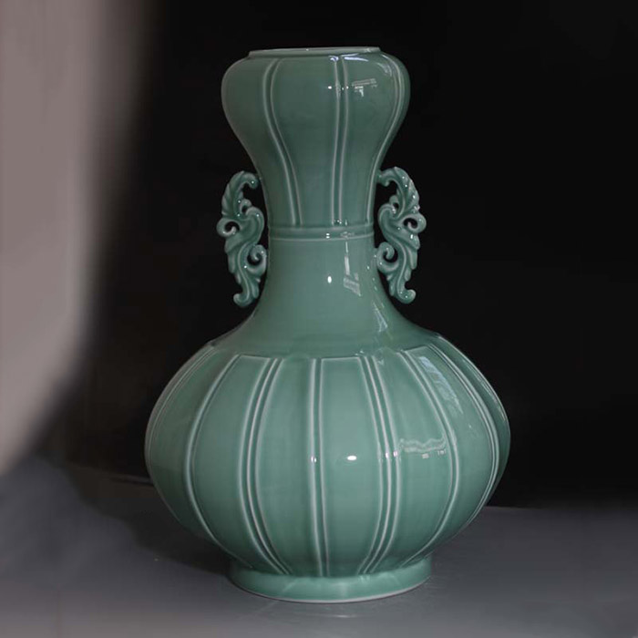 Vintage elegant double ear garlic celadon flower vase home accessories