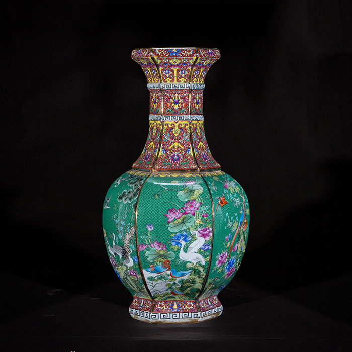 Qing dynasty qian long green enamel pastel ceramics vase and ornament