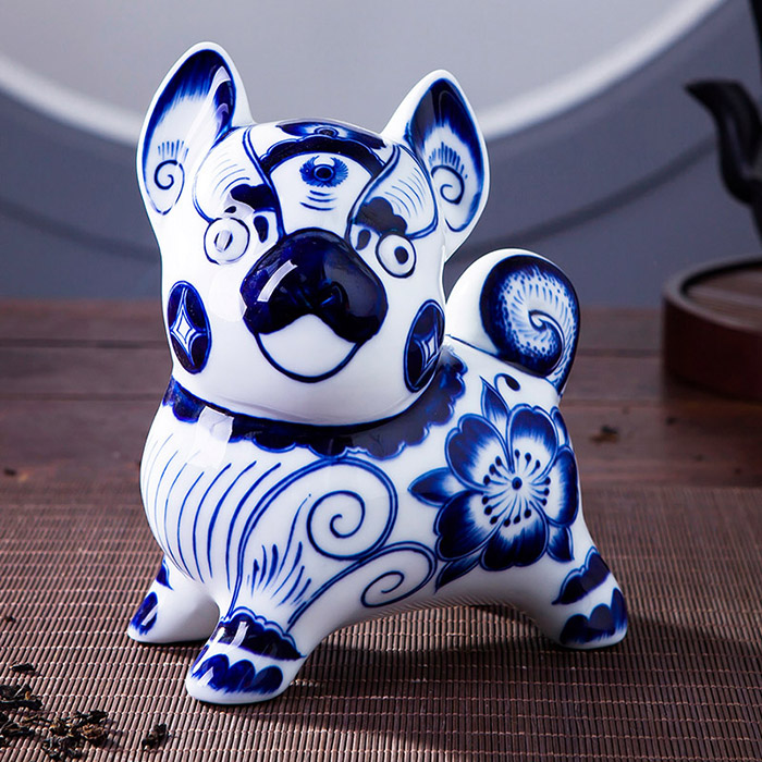 Blue and white porcelain auspicious dog zodiac ornaments home