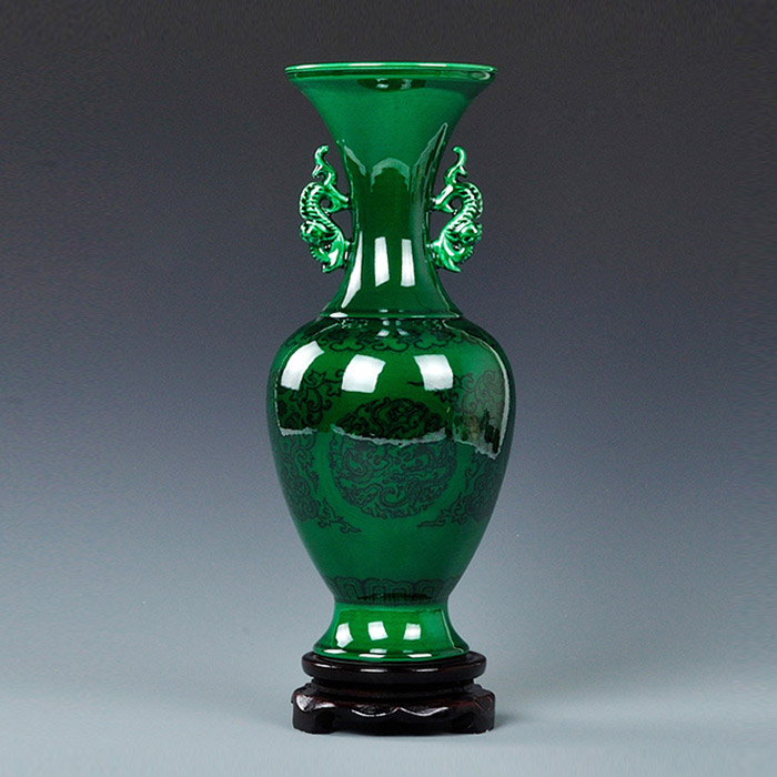 Chinese Jingdezhen small jade green ceramic vases and ornaments