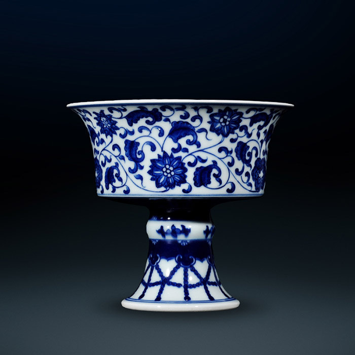 Hand-painted blue and white tangled lotus ceramic sanskrit goblet