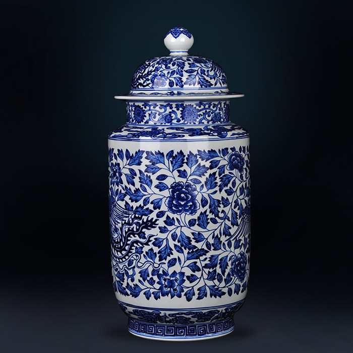 Vintage collection blue and white phoenix porcelain storage cover jars