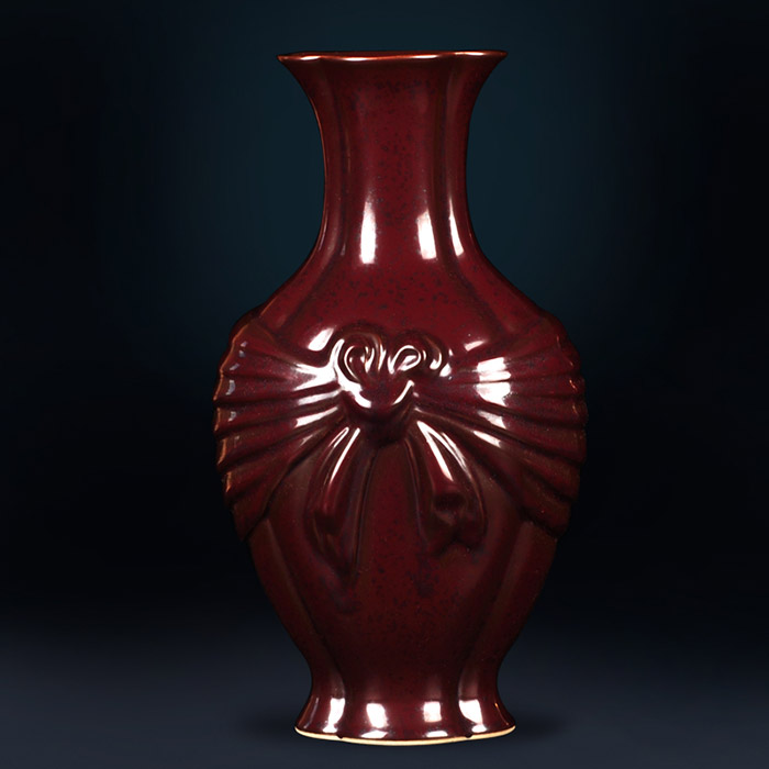 Chinese vintage rust red glaze ceramic vases and ornaments living room
