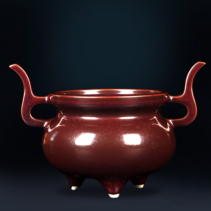Jingdezhen handmade three-legged burgendy red aromatherapy stove