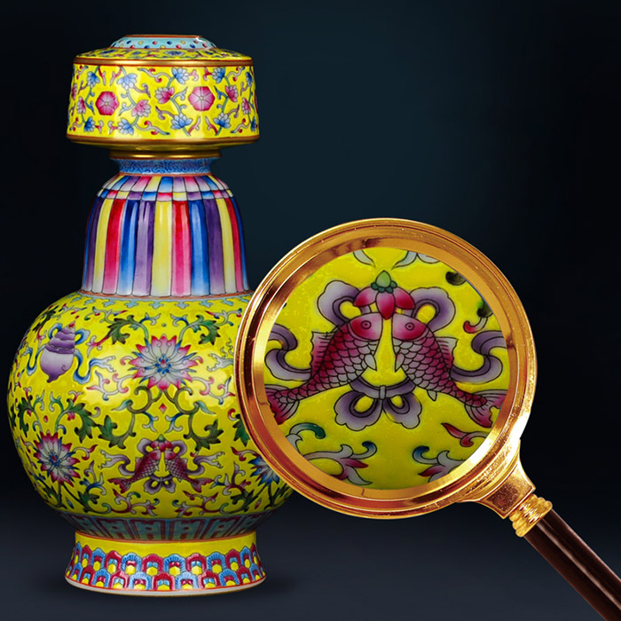 Vintage qing qianlong yellow background pastel ceramic pot with flower