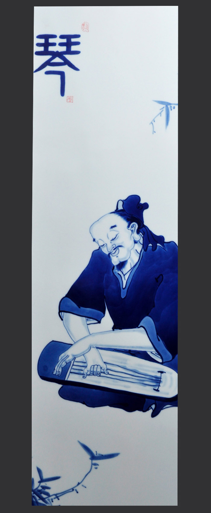 Hand painted zither chess book and painting ceramic wall hanging plate