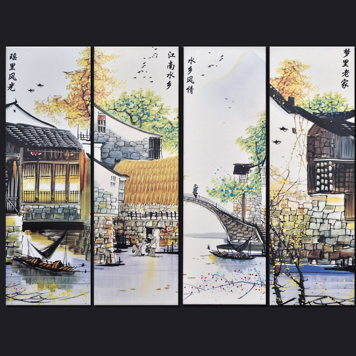 Rectangle Jiangnan water village ceramic wall hanging plates home