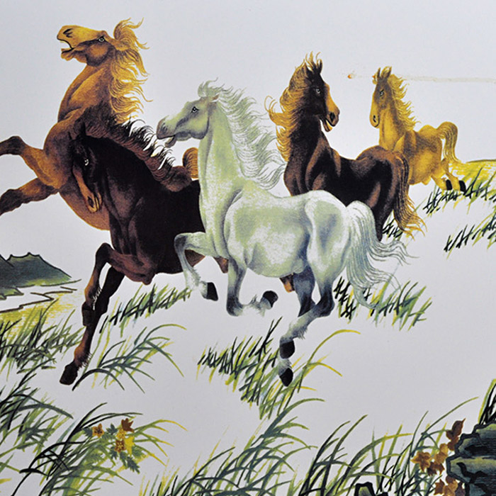 Decorative eight horses painting ceramic wall hanging plates home