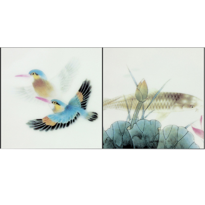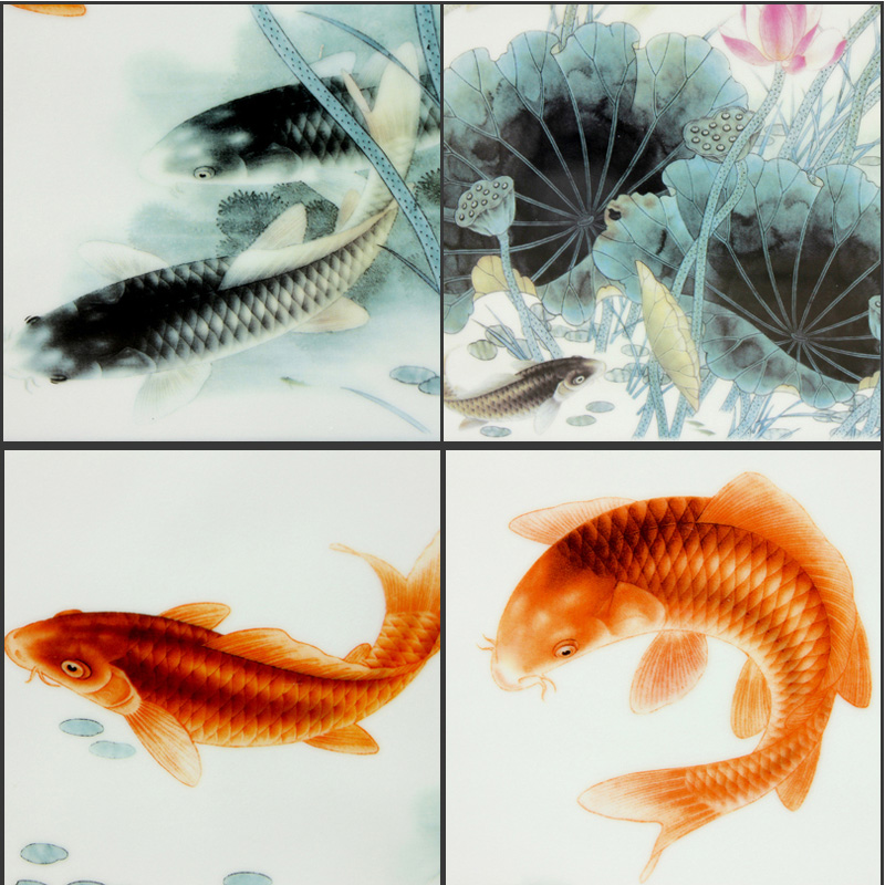 Lotus and fish framed mural wall decoration porcelain plate painting