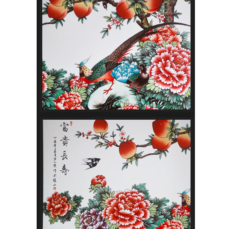 Birds and flowers dining room sofa background wall ceramic painting