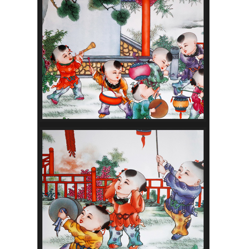 Boys playing dining room sofa background wall ceramic painting
