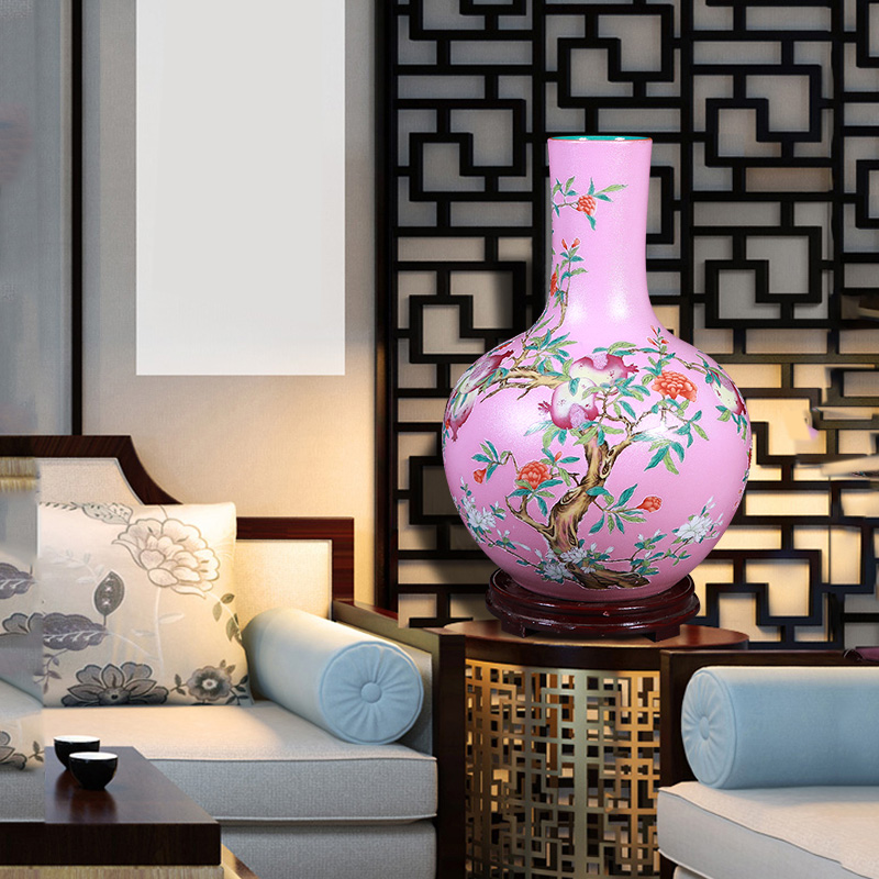 Jingdezhen large hand painted pink ceramic pastel flower vase home