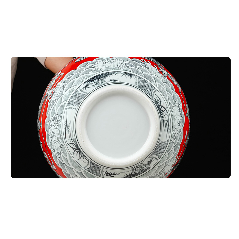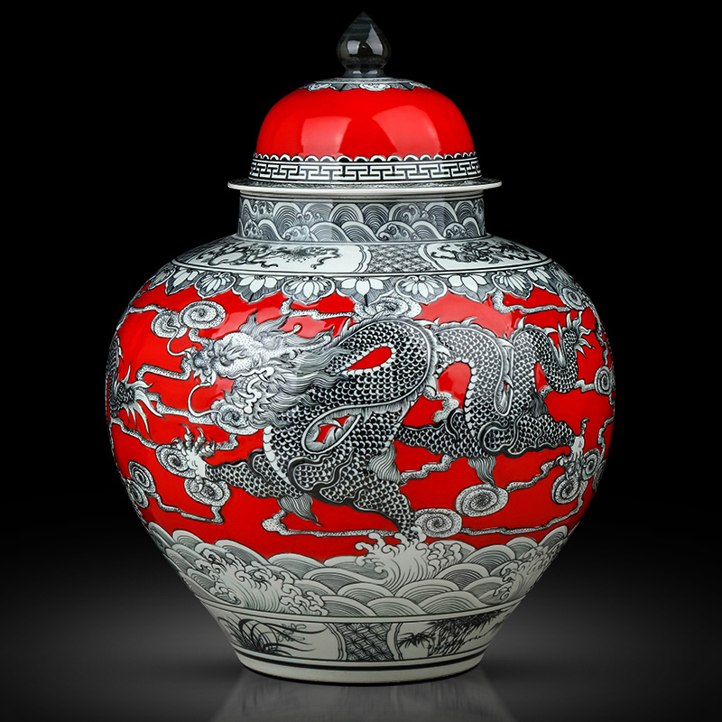 Jingdezhen vintage carving dragon red ceramic storage jar home