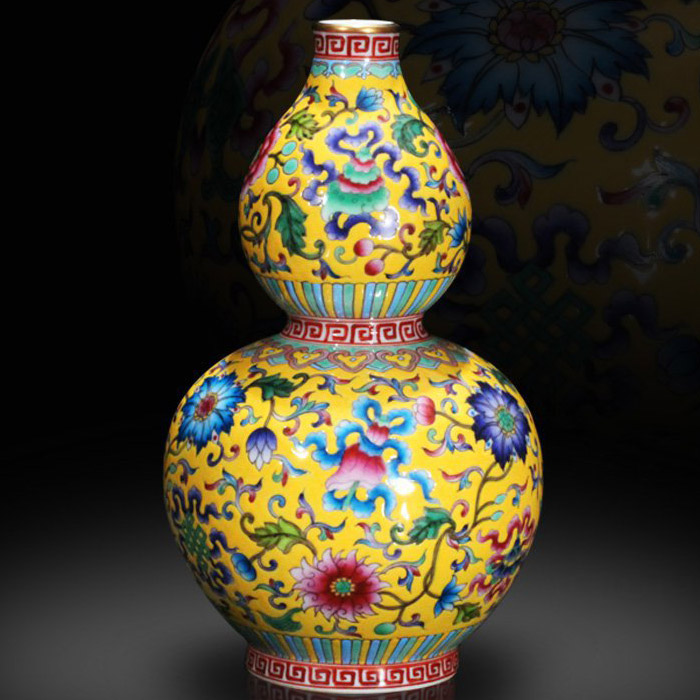Hand painted enamel pastel luxury golden-edged gourd ceramic vase