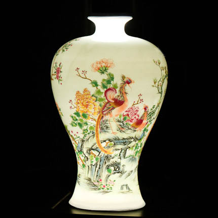 Designer hand-painted phoenixes painting thin porcelain embryo vase