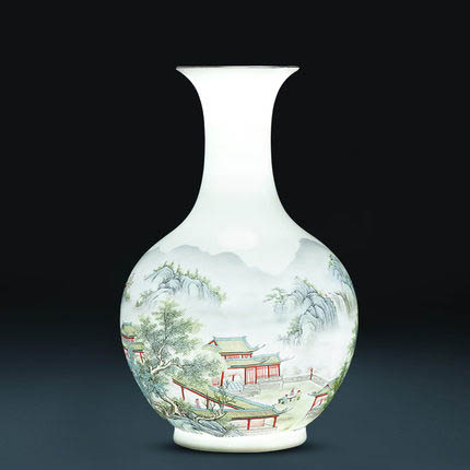 Hand-painted landscape painting thin porcelain embryo vase ornament