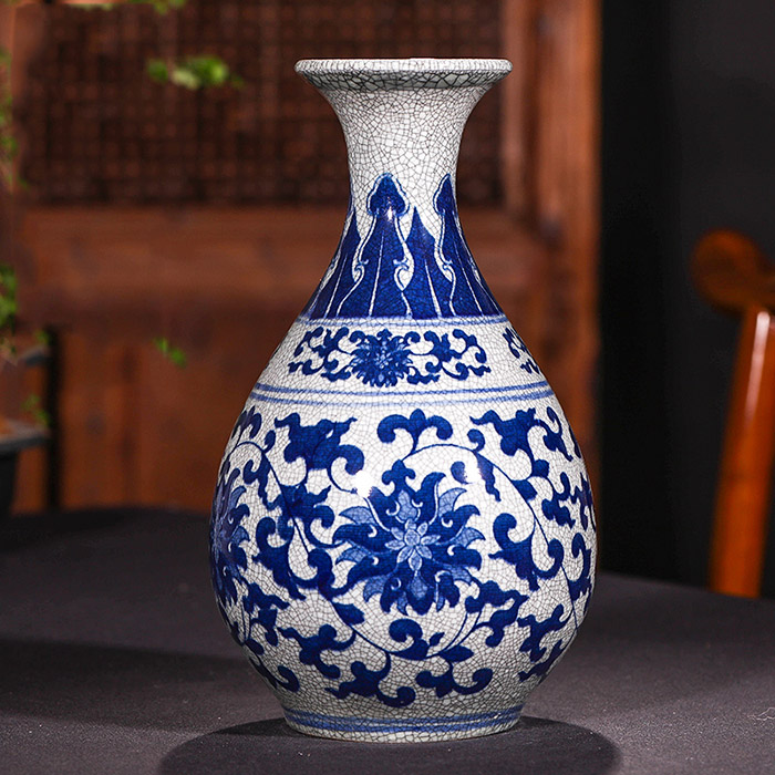 Jar shape blue and white cracked glaze ceramic vase