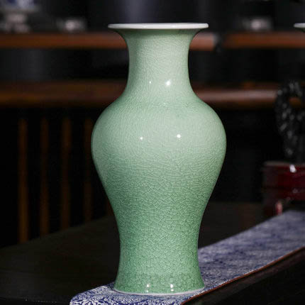 Antique big fishtail green cracked glaze ceramic vase for bedroom