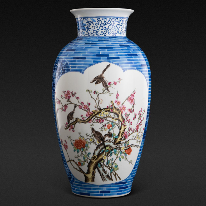 Jingdezhen floor pastel porcelain vase with birds and flowers home