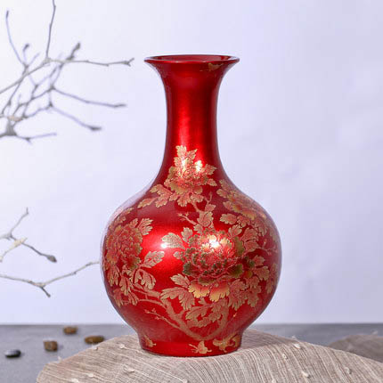 Trendy red crystal glaze ceramic vase for flowers
