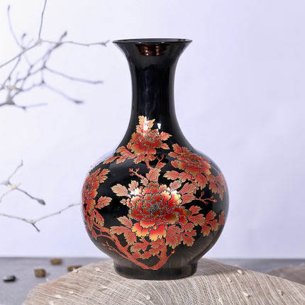Trendy black crystal glaze ceramic vase and ornament for flowers