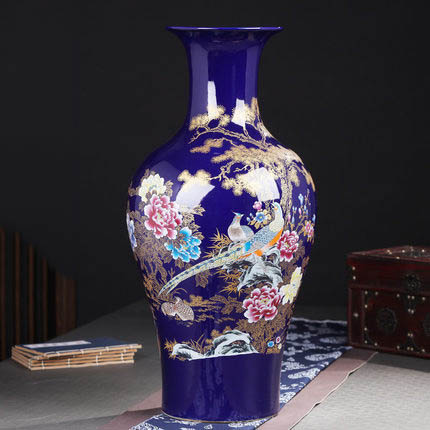 European large ornamental blue ceramic floor vases for living room