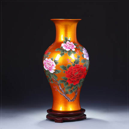 Pot-shaped golden glazed ceramic vase flower arrangement