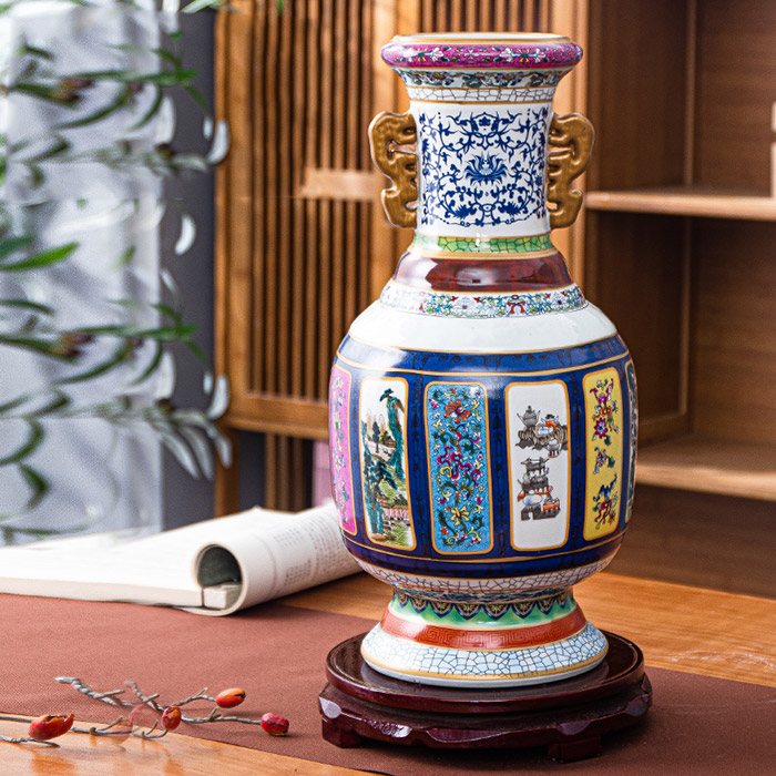 Vintage qing dynasty hand painted oriental porcelain vase ornament