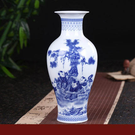Jingdezhen overglazed children figure fishtail shape ceramic vase