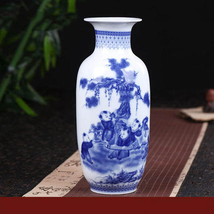 Jingdezhen Overglaze Boys Figure Winter Melon Shaped Ceramic Vase