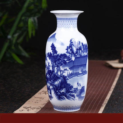 In-glaze Landscape Loft Pattern Winter Melon Shaped Ceramic Vase