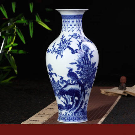 In-glaze fishtail shape ceramic vase with flowers and birds pattern