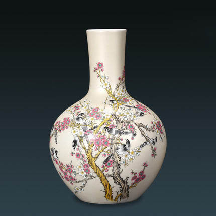 Celestial Globe Shaped Plum Blossom and Bird Golden Ceramic Vase