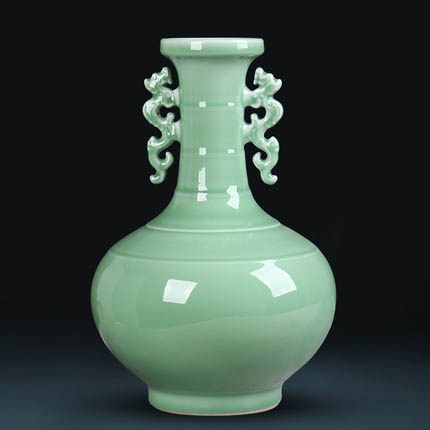 Jahrriesnge green binaural vase cna0915 Porcelain
