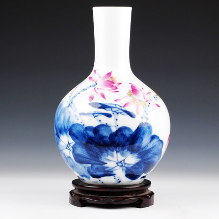 Celebrity master hand-painted lotus celestial shape ceramic vase