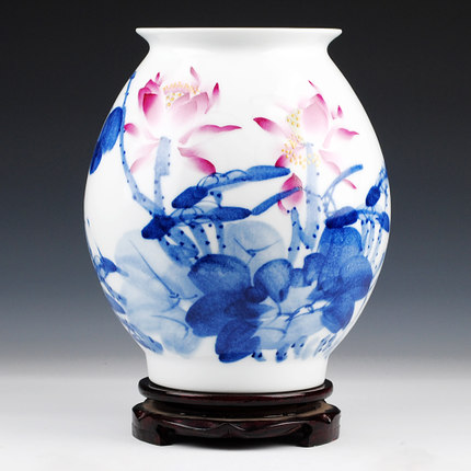 Celebrity master hand-painted lotus flower waist drum shape vase