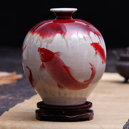 Jingdezhen kiln cracked glaze pomegranate shaped red fish ceramic vase