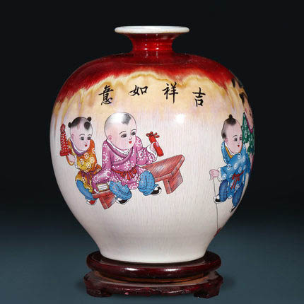 Jingdezhen kiln cracked glaze pomegranate shaped children ceramic vase
