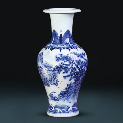 Hand painted landscape blue and white ceramic ornaments and vases
