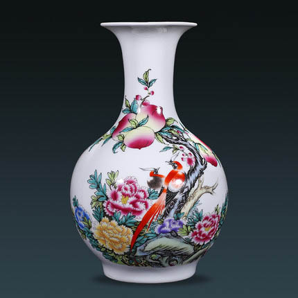 Peaches and peonies and birds pattern ceramic vases and ornaments
