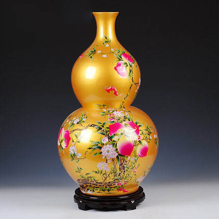 Happiness and longevity meaning golden gourd-shaped ceramic vase