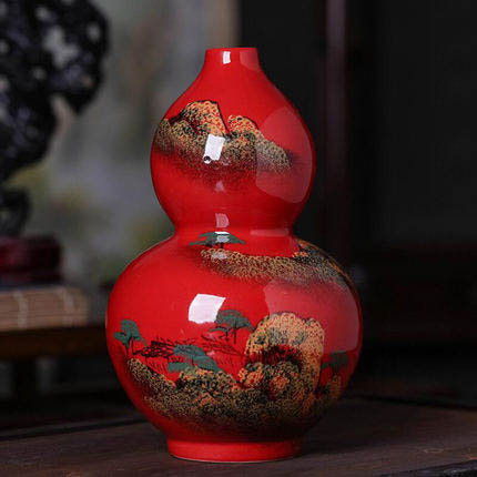Jahrriesnge red landscape vase cna1353 Porcelain