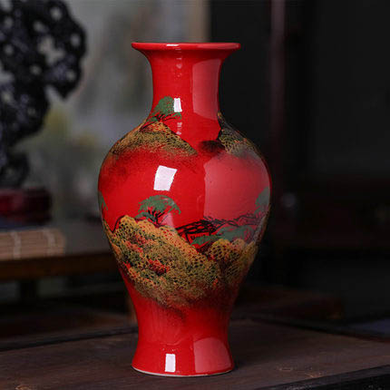 Jahrriesnge red landscape vase cna1354 Porcelain